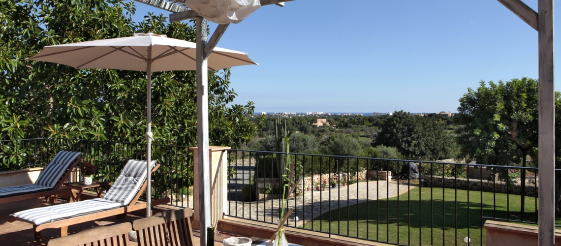 Su característica principal es su enorme terraza con unas privilegiadas vistas al mar y la montaña, simplemente abrir la ventana y observar un maravilloso “ amanecer en Mallorca”. Se encuentra en la primera planta del edificio.
